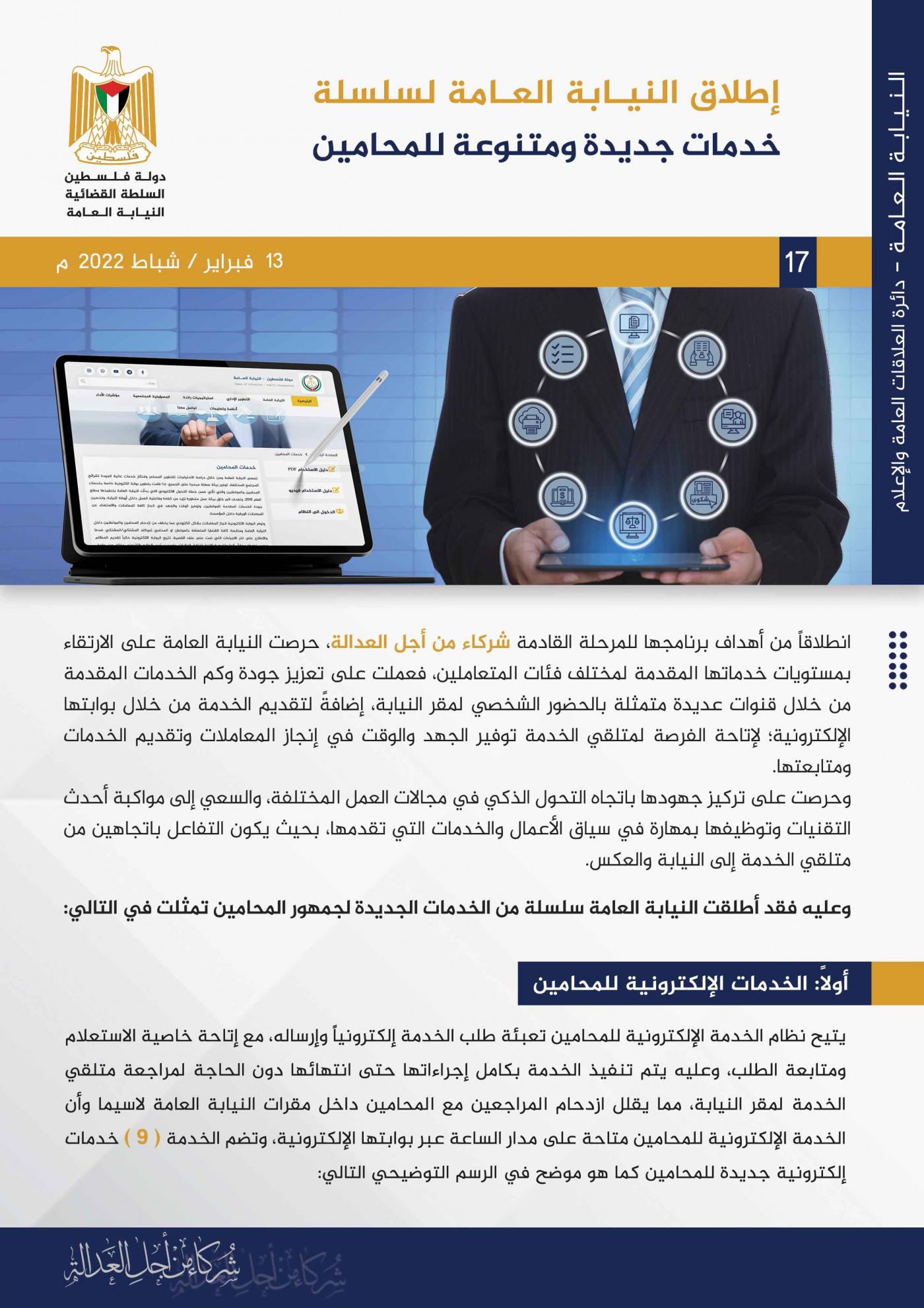 إطلاق النيابة العامة لسلسلة خدمات جديدة ومتنوعة للمحامين