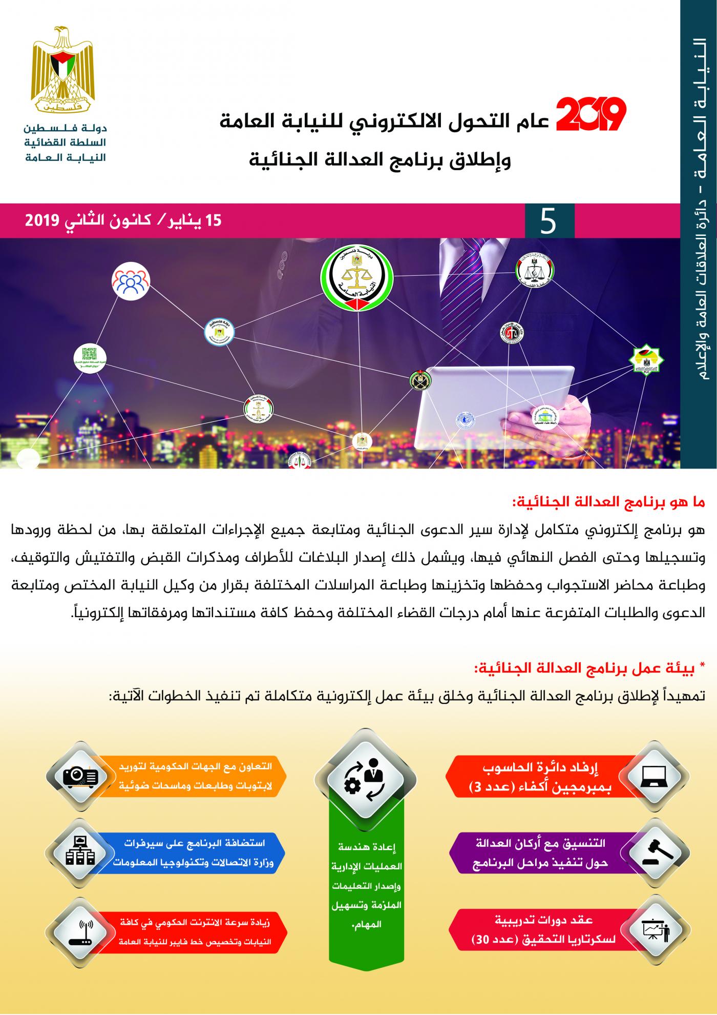 عام 2109 التحول الالكتروني للنيابة العامة ..واطلاق برنامج العدالة الجنائية