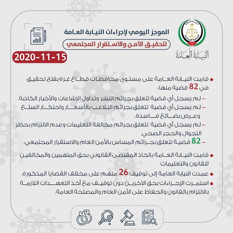 الموجز اليومي لإجراءات النيابة العامة لتحقيق الأمن والاستقرار 15/11/20202