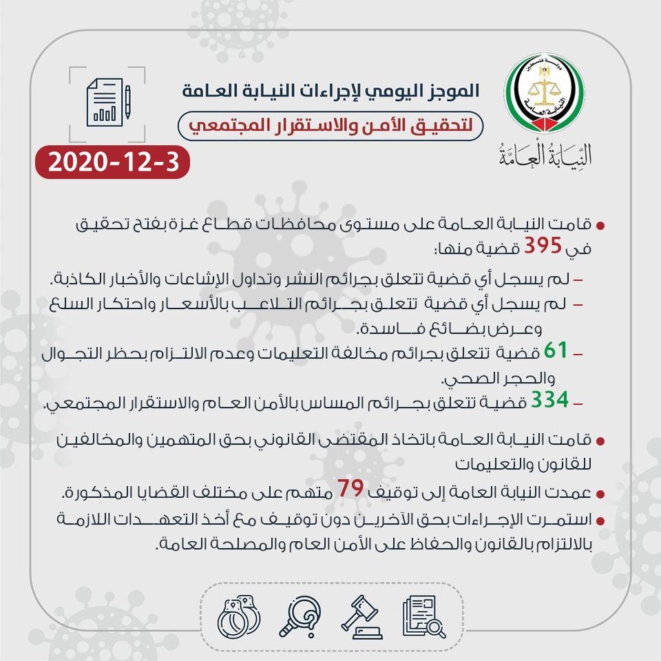 الموجز اليومي لإجراءات النيابة العامة لتحقيق الأمن والاستقرار 03/12/202