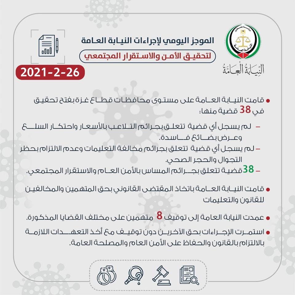 الموجز اليومي لإجراءات النيابة العامة لتحقيق الأمن والاستقرار المجتمعي26/2/2021